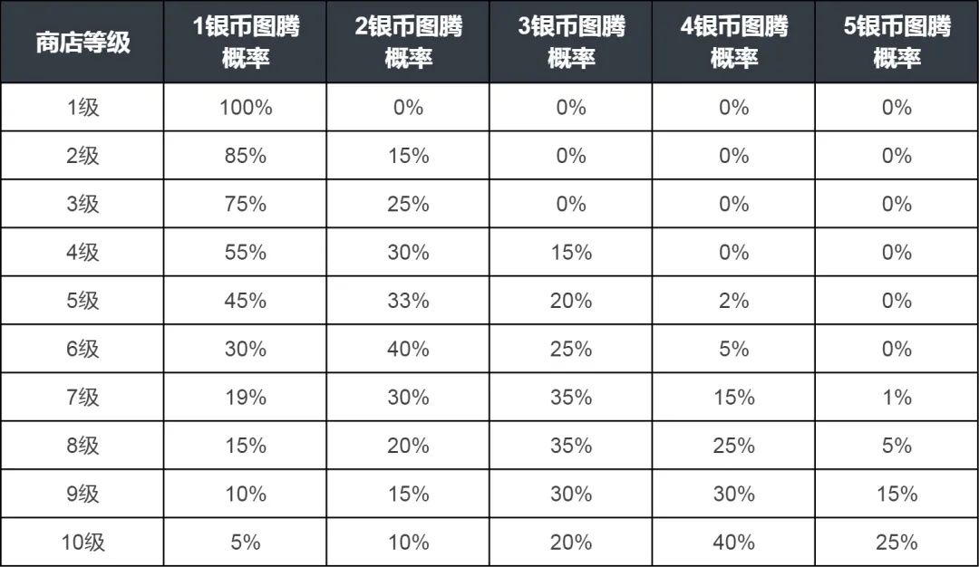除了图腾羁绊的策略玩法外,掌握图腾商店的升级和刷新规律,也对我们排兵布阵有重要作用,下面将公示升级经验和商店等级对应的图腾概率,助力大家更高效地获取目标图腾。