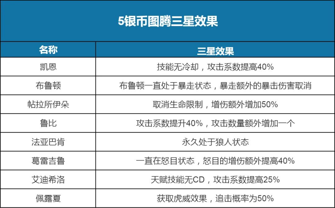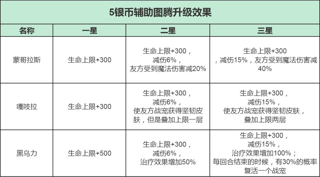 而当5银币的图腾升星到3星后,会在常规效果的基础上,额外解锁强力的特殊效果。