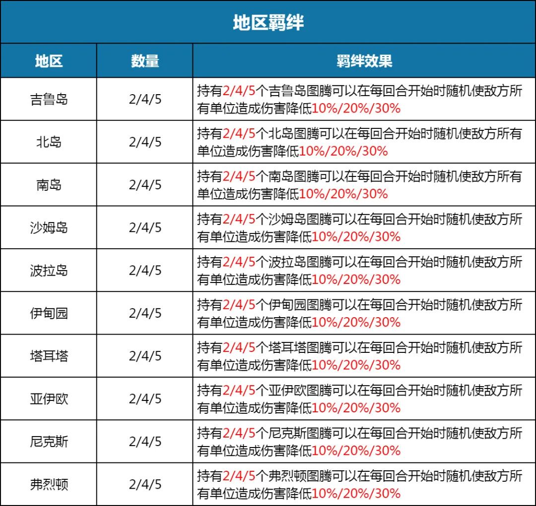特别注意:地区羁绊只能同时生效1个最大效果。