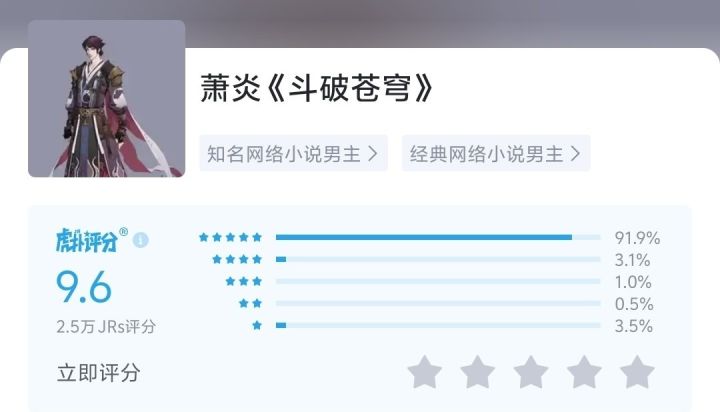 “宁做萧炎小弟,不做唐三兄弟”是虎扑共识。虽被吐槽“钻小医仙被窝”,但重情重义形象深入人心,尤其对比唐三更显反差。苍穹榜时期评分高达9.5分(774人评分)。