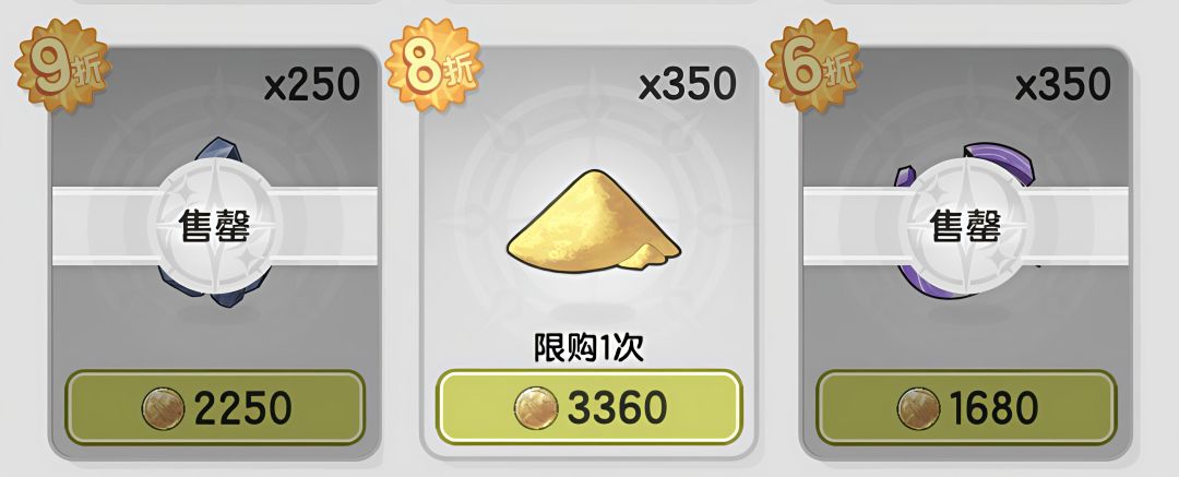 🔸首先:(1)金币可以用来在家园商店里买其他三种材料,并且还有折扣(如下图),非常值