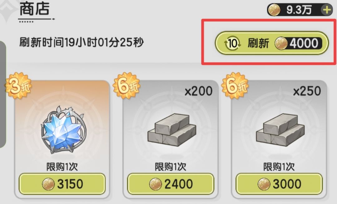 刷新次数:建议2-3次,运气好能刷出星之愿(抽卡道具),非常值