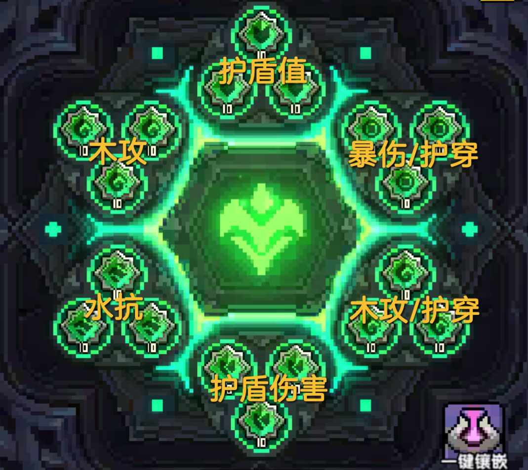 技能达标78级后选择9颗水压—克制—伤增的宝石
