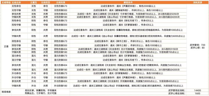 ⑤窍关解锁:解锁消耗武学要领、武学心得,由低到高消耗依次增加,解锁同时有前置条件,整体为各类江湖积累(详见封面图)