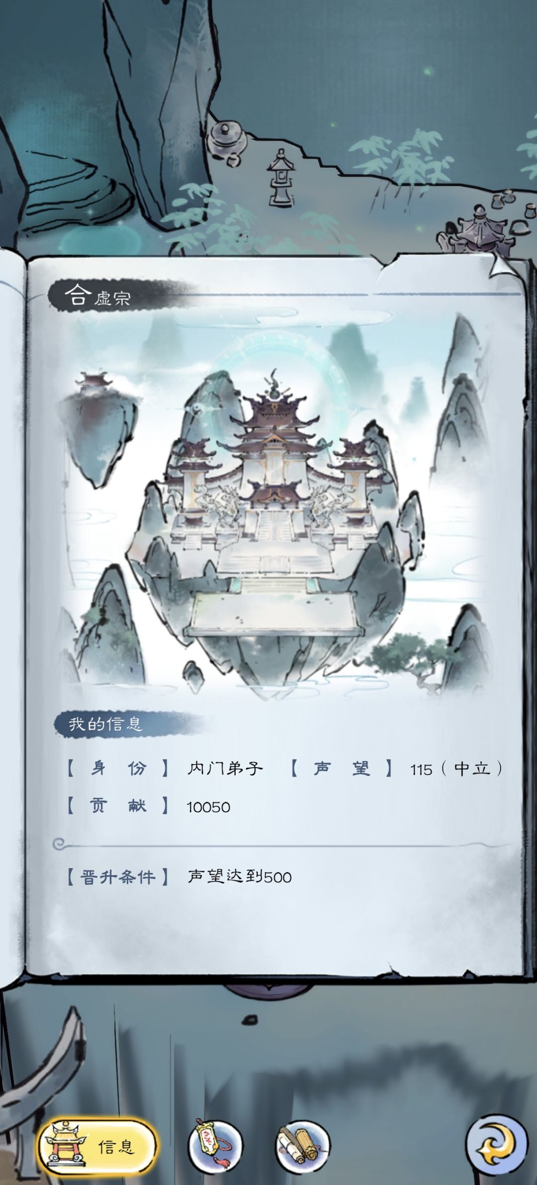 5、内门弟子的任务,需要做宗门委托,赚取声望,70声望就会自动晋升,声望在右下角的菜单-宗门,可以看到(图5)。