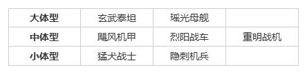 大体型兵种包括玄武泰坦和瑶光母舰。