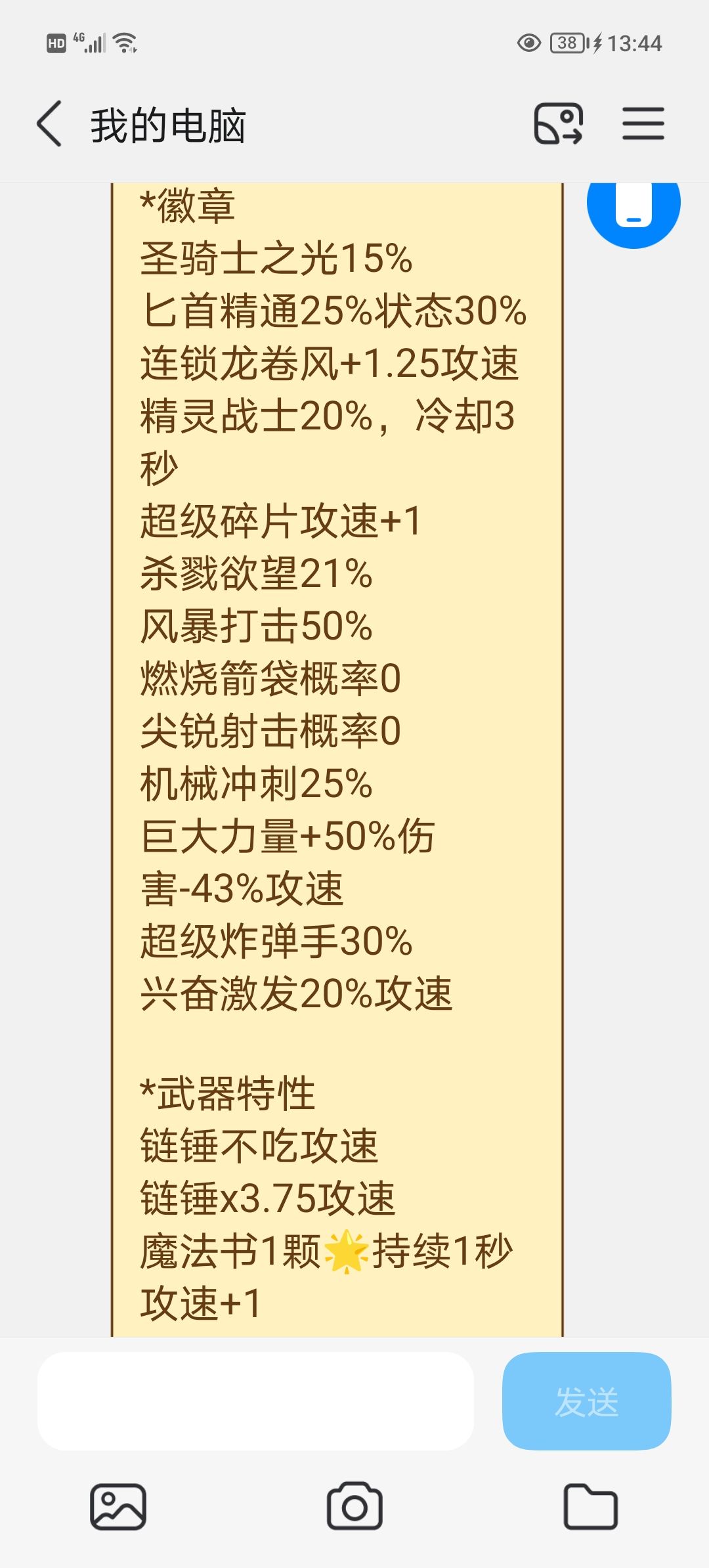 自己测试的徽章和武器特性,为什么说链锤最强?因为这武器不怕减攻速,配合巨大力量和冰冻王冠打出最高输出,是其它武器没有的徽章增伤,而且本身伤害是x3.75,也就是1秒转3.75圈。