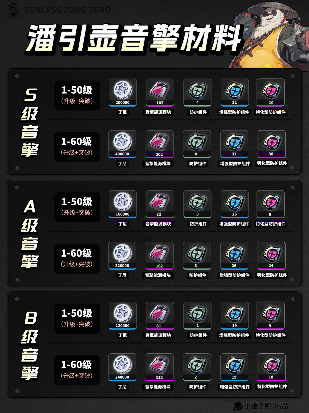 这一期是仪玄/潘引壶角色养成材料与音擎养成,音擎包含S/A/B级材料,小伙伴可根据自身需求进行选择。