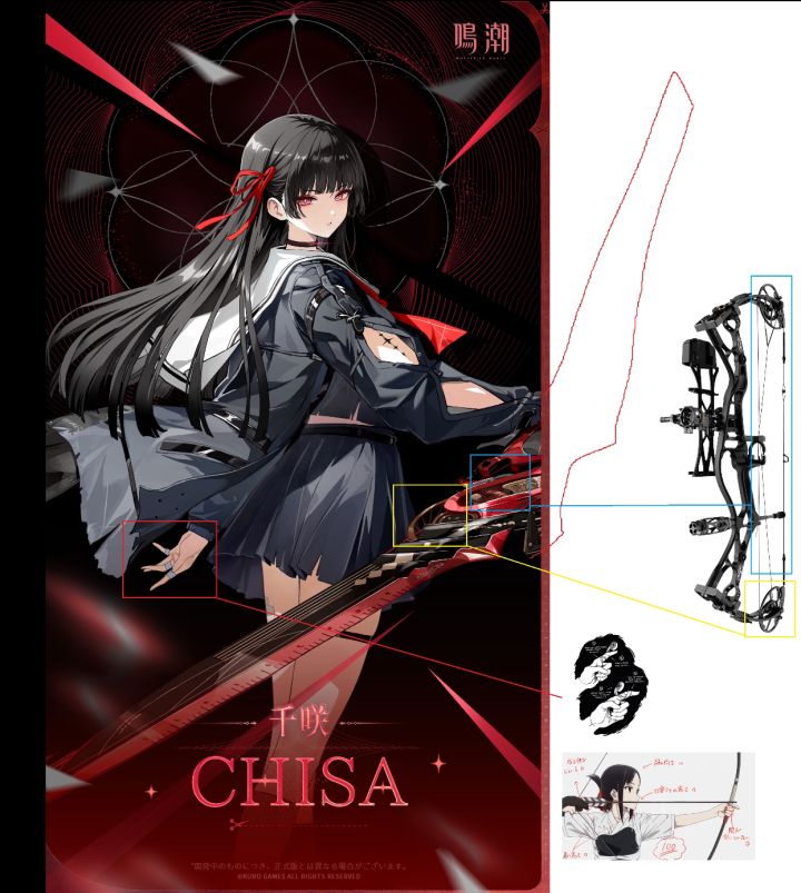 ⭐x上有人分析这个黑发红瞳妹子——千咲的武器可能不是刀,是弓!这动作模组该多帅啊!