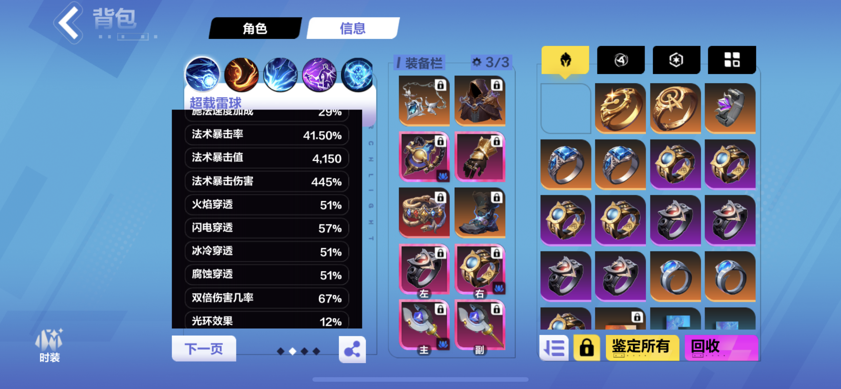 前期用的晨川放那套推荐的雷球,后面就不知道换什么了 换哪件都价格2w火往上,咋办咋办呢