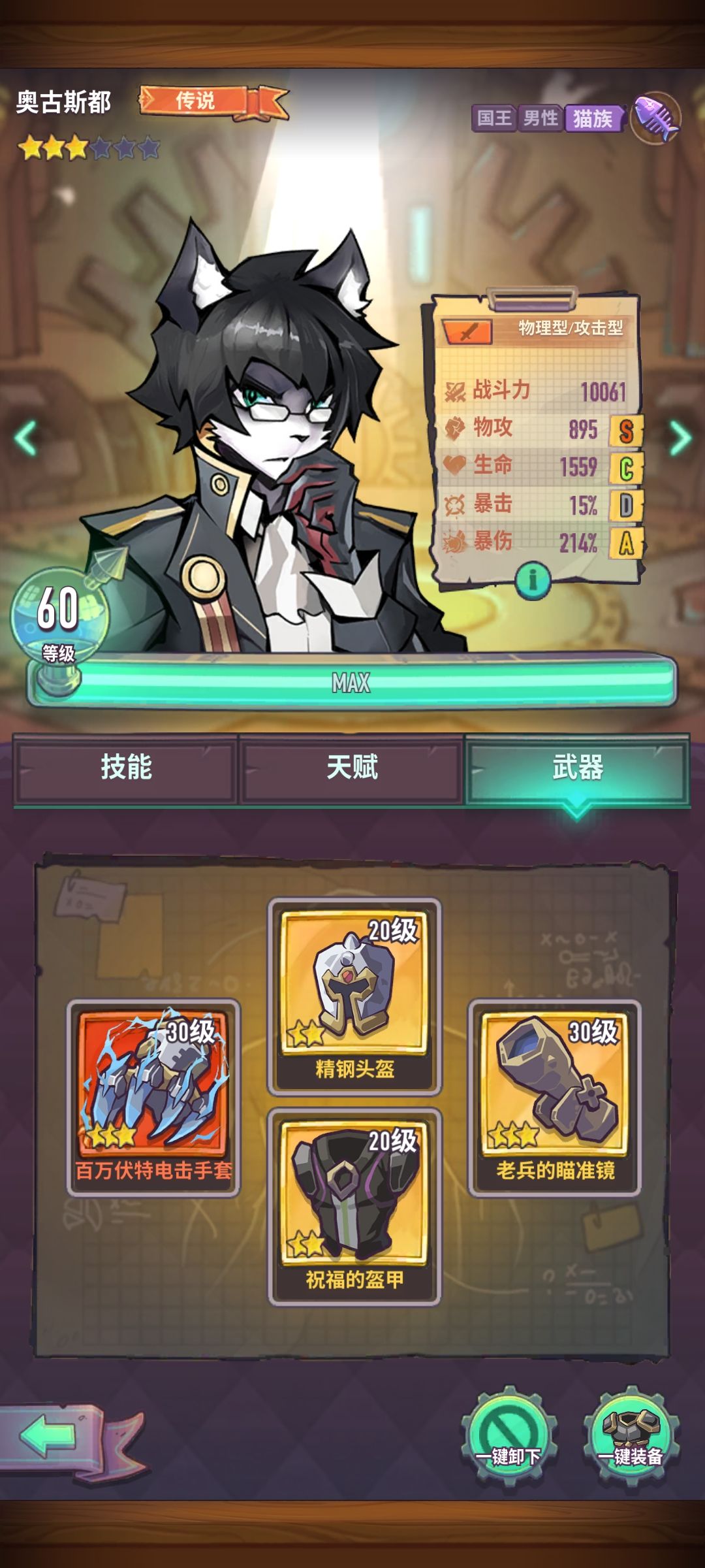 - 奥古斯都:黑猫,领地商店可兑换,普通玩家一个月内可四星。100%暴击理论上很强,实际测试下来较为平庸,说到底还是因为无法破防,0伤害暴击了也是0