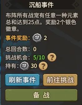 2. 每局开打之前看清楚沉船事件,做不了的尽量刷新。(每层都有一次刷新机会)尽量变成下图所示再开打。理论上第一层1层就能吃3块利息