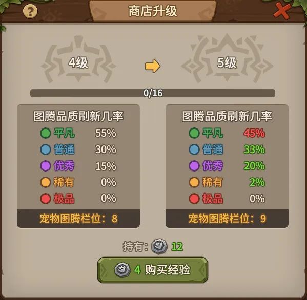 小伙伴们有时候很难拿到自己想要的卡。因为不会运营,对概率也不懂,这里做一个详细解释:优先拿自己的宠物需要的卡片。右边是概率。所以等你商店升级之后(如9级商店)你再想拿1金币卡的概率只有10%。所以必须前期就部署好。同理:如果只有7级商店,想拿到5金币卡的概率只有5%。而4级商店是不可能出极品卡的(5金币卡)。