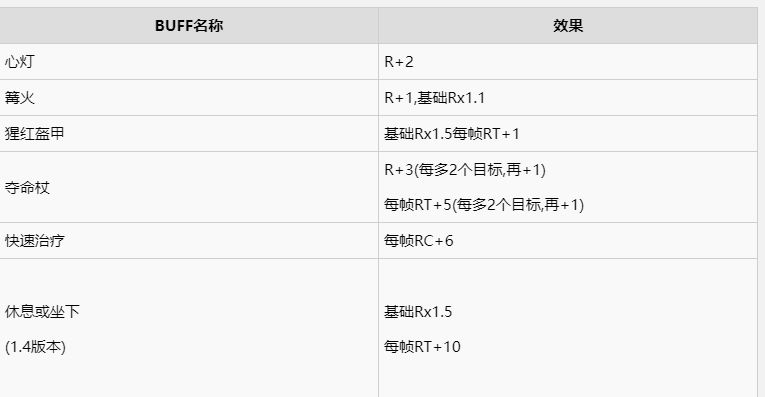 2.buffs部分:buff:下文中各类buff与debuff的效果中对“R”的影响的总和。