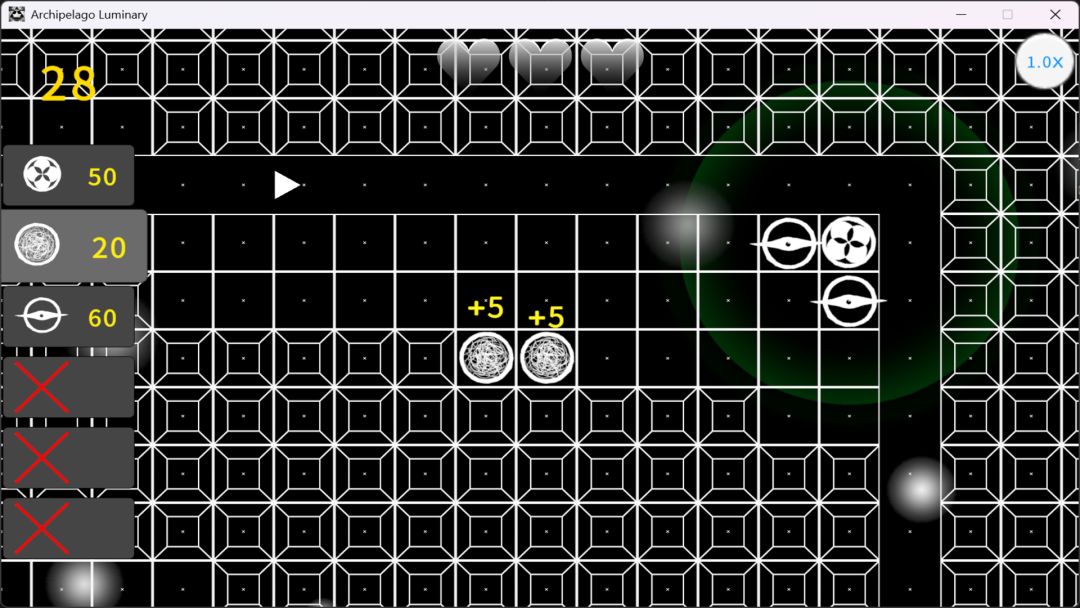 《阿奇佩拉戈 北落之光》是一款类保卫萝卜的极简画风的2d塔防游戏,玩家需要合理规划炮塔的建造与资源的消耗,抵御每一波敌人的进攻。在14个关卡中不断反击,从最后的净土,到曾经的领地,直到触摸到北落之光的真相。