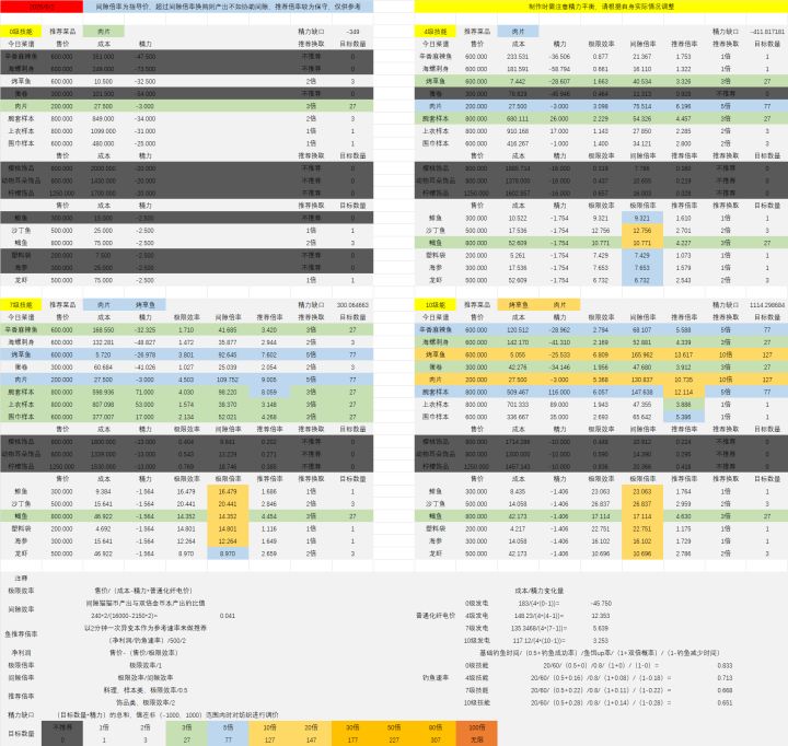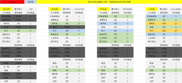今日7,10级精力溢出已降档,10级精力严重溢出(1w+),降档后仍未达到理想范围,如果今日有大量精力需求可以继续制作【腕套样本】,10级技能最高推荐10倍,其他等级详见详细版原价标注