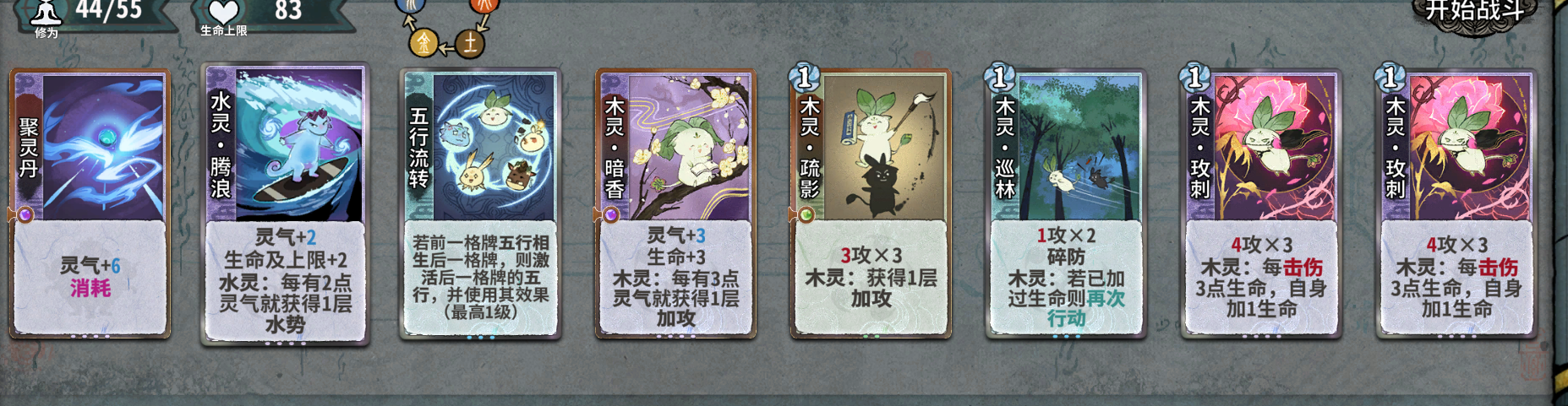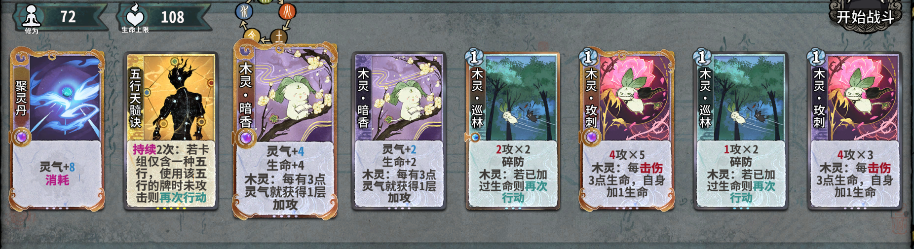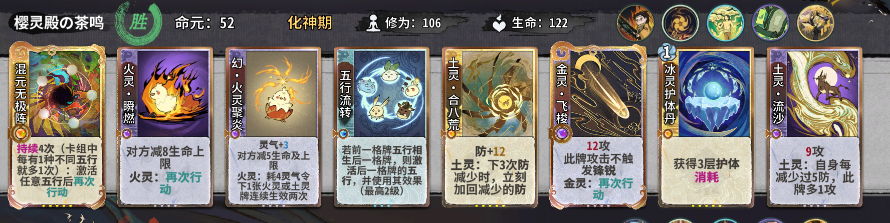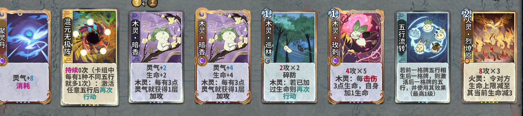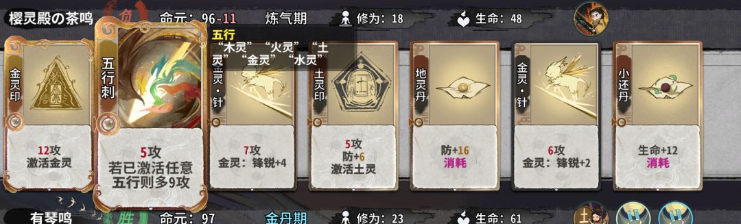 五行流转是必留,无论是元婴期玩什么卡组过度,还是最后成行都是极为关键的卡。