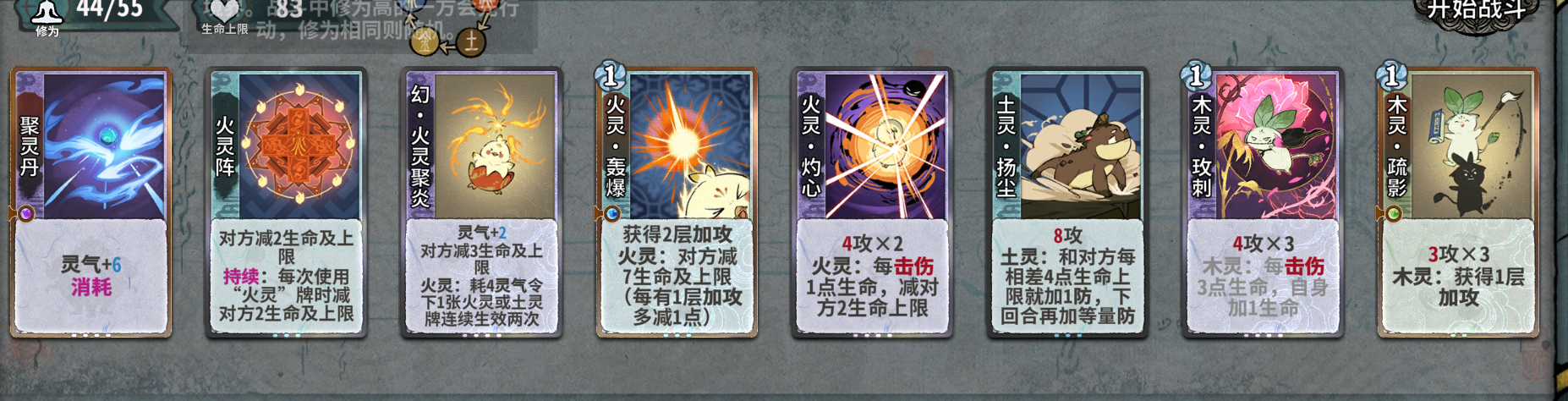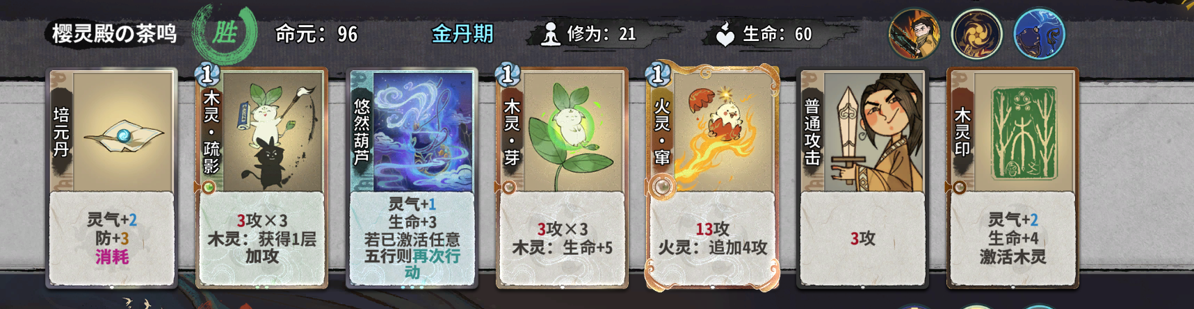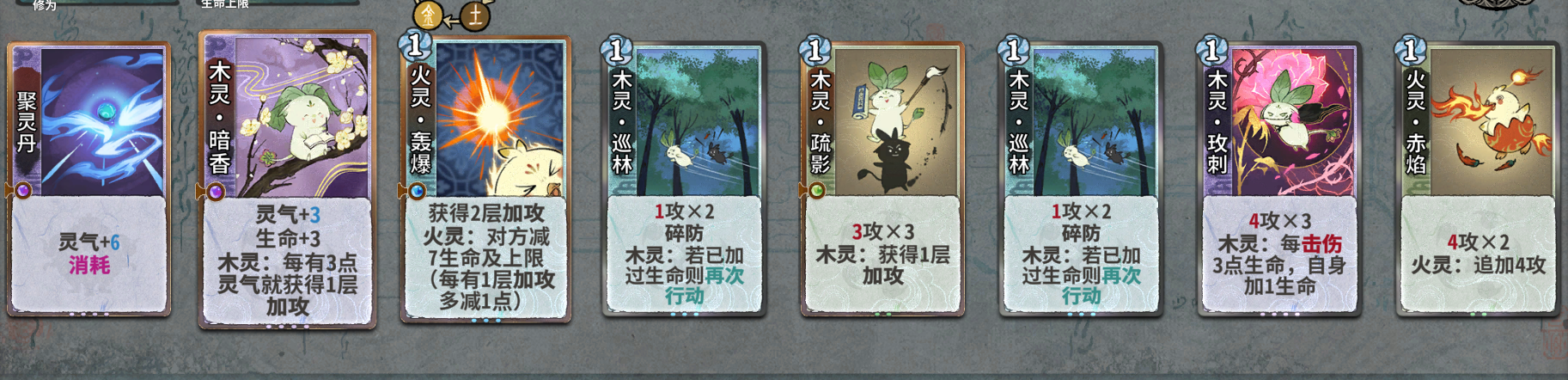 在第八轮上元婴卖掉其他废牌,比如二级的丹药卡,地灵丹和小还丹,还有一些一级的过度卡。