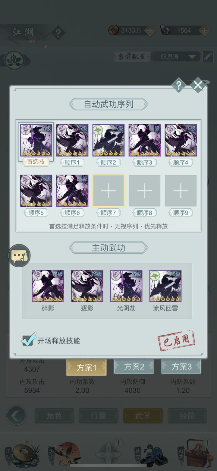 4无锋问酒(伤害5🌟 防御4星) 核心:问酒本身的高爆发搭配上最高伤害的武器,输出已经到达极限,谁玩谁知道。 装备属性要求:玉佩反抵。手镯高反刃或者负伤。 护腕(高穿透,高穿透,高穿透)砍人疼不疼这个很关键 衣服高防御。鞋子高防御。 特技要求:强攻,重击,易伤。 剑式要求:4太极2凌波。 劈剑式高反或者高负伤。 萃灵要求:6追命3御土。 ———————————————————————————5蛇刃暗影免伤轴 (防御5🌟 输出4🌟)。 核心:超快速度的百分之40免伤,配合流风,让蛇刃渡过前两回合的弱势期,后面就是持续掉血折磨对手时间了 装备属性要求:玉佩各类负面抵抗。 手镯高断碗高断刃(没有就带高断碗),护腕高穿透,衣服防御,鞋子防御。 特技要求:强攻,轻盈,碾压,回春,连击,易伤(需要的有点多前4个最好有)。 剑式要求:两凌波,两太极(上善),两魔刃,劈剑式高断碗。其他全部堆防御 萃灵要求:6树灵3百花3兰催。 暗影的大成轴,建议武器20以后在玩,装备剑式要求都不低,强度算是暗影轴的天花板了。 想到再来写