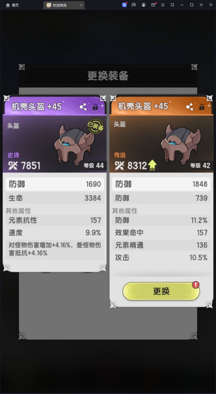 图2为面板,图3为装备替换,右边橙装扛不住飞弹,少一回合,左边能吃得住,战力差距不大的情况下,装备优选有效词条。