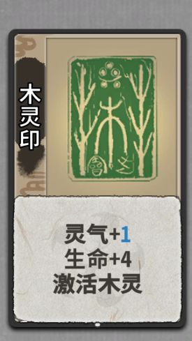激活:所有明确说激活的都视为这轮永久生效,给予的激活视为相对应的激活时能够在使用相对应的牌的对应效果,用下图讲解,如果使用下图这张卡时激活了木灵,则能够在打出木灵前的效果后追加一个”木灵:“后的效果,其他五行的卡也是这样。