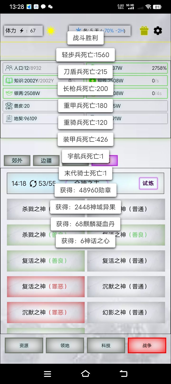 用这些绿花把装甲的生命再武装一下。用勋章把未来的武器和防具全开了,丹药喂满送去极限觉醒,别的兵都不给青龙丹先把未来的给满。白泽全给未来。