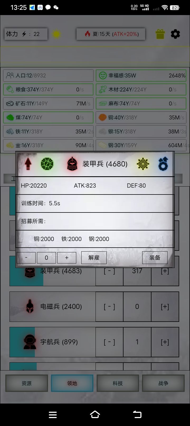 这个阵容用重骑直接把攻击加满,步兵不加攻而只用来破甲。这个阵容重骑和步兵的总上场会比上一个少几百,炸弹也会更好发挥。重骑血量能控制好的话用这个阵容。