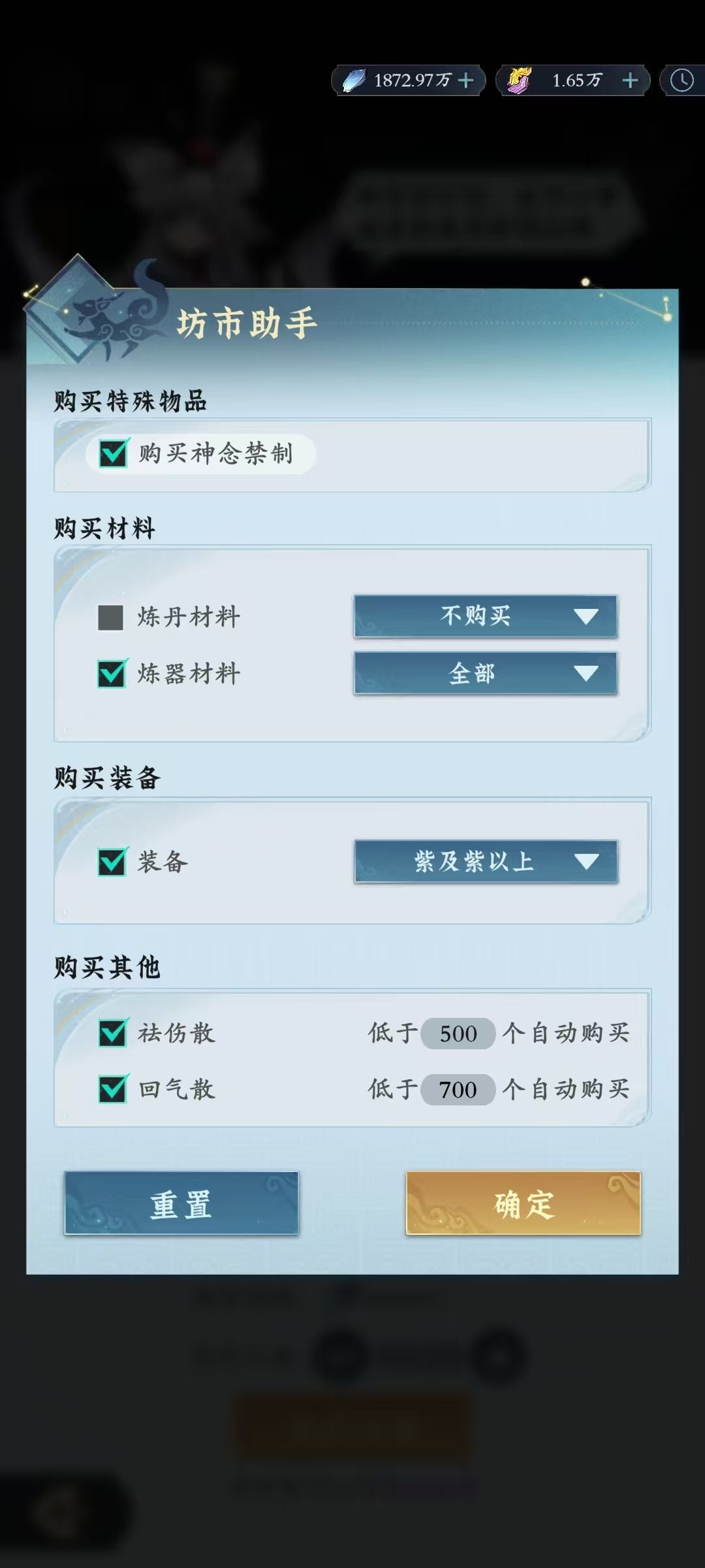 另外仙坊助手,就参考我另一个帖子零氪微氪攻略-浓缩精华精简版一页通,提到的商店购买按需设置即可!
