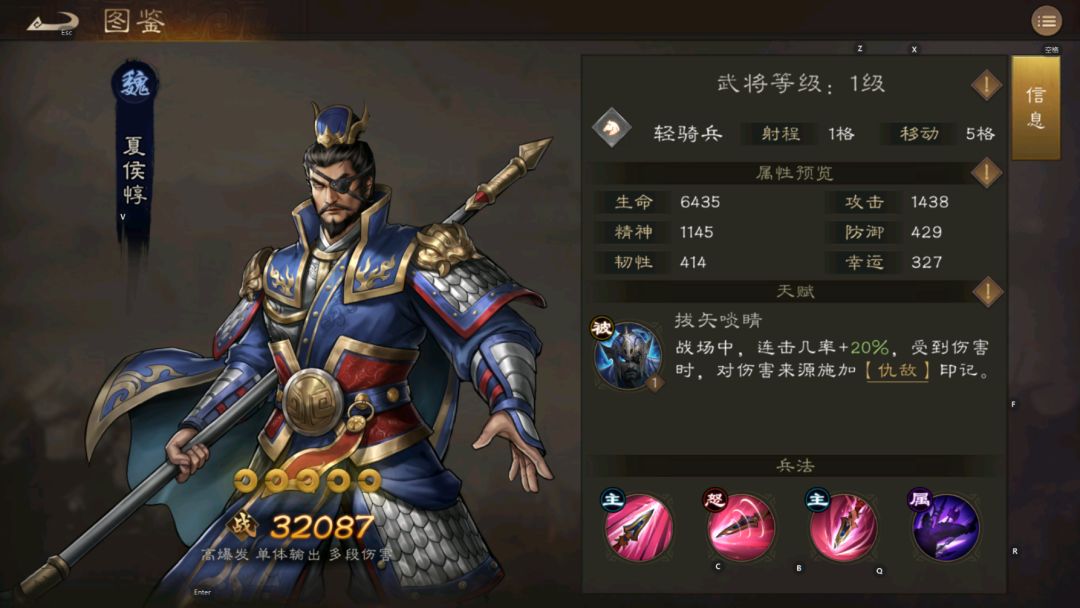 天赋:唯才是举 战斗开始五维属性最高一项基础属性+5%(只有基础属性,感觉鸡肋的天赋)