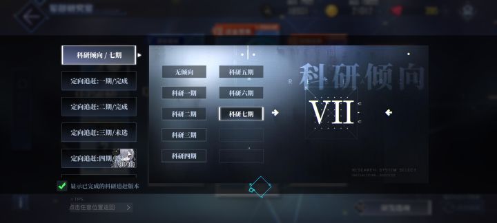 1,科研倾向一般是选择当前最高的,即科研七期科研五期及以下建议不选。(不选是因为有物资追赶)