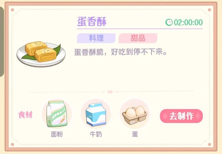 蛋香酥 面粉+牛奶+鸡蛋 2h