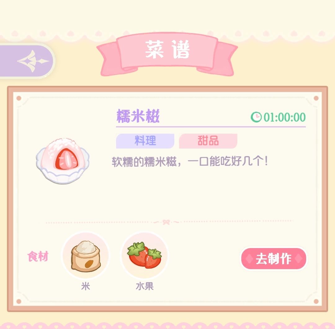 甜品:糯米糍 水果+米 1h