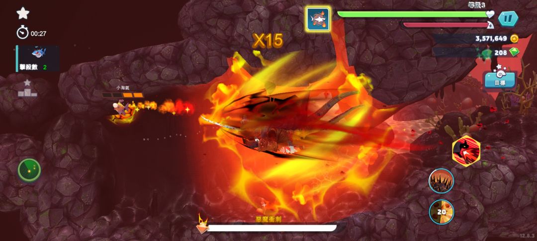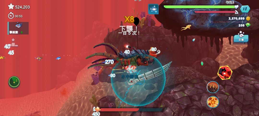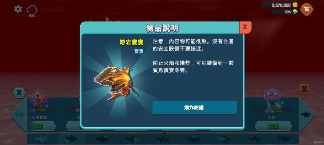 恶魔系列只能用钻买,1200,打折300。恶魔鲨拥有3个技能,进场随机火冰雷冲刺。黄金条满后会召唤一只小淘气,拥有4滴血,每滴血相当于一颗钻,黄金热效果过后消失。恶魔鲨会进入专属地图,地图里新增水母会远程放电,还有电鳗,电鳗放电无敌吃不了,水母的话可能是体型小还没满级,水母和水雷都吃不了。目前只有一只巨兽这一直恶魔鲨。刷钻很快,有装备的情况下更好,防爆鲨和螺钉,不然老被水母电鳗打断。