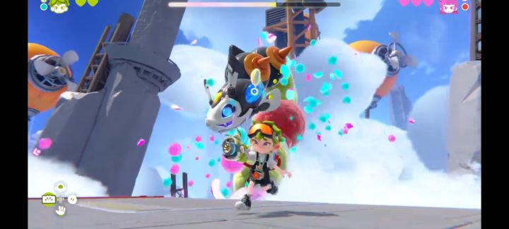 在色彩和三消之外,四大道具:光波守卫(护盾)可以抵挡同色激光、能弹反部分敌人的攻击、能举过头顶当做平台来让同伴落脚;怪力小子(磁力手套)能抓取场景道具或与目标移形换位;轰隆先锋(炸弹变身)炸毁障碍与范围攻击、也能在加速带上进行冲刺;飞喵队长(无人机)主要专注于解谜,可吊起桥梁或掀开怪物的护甲。