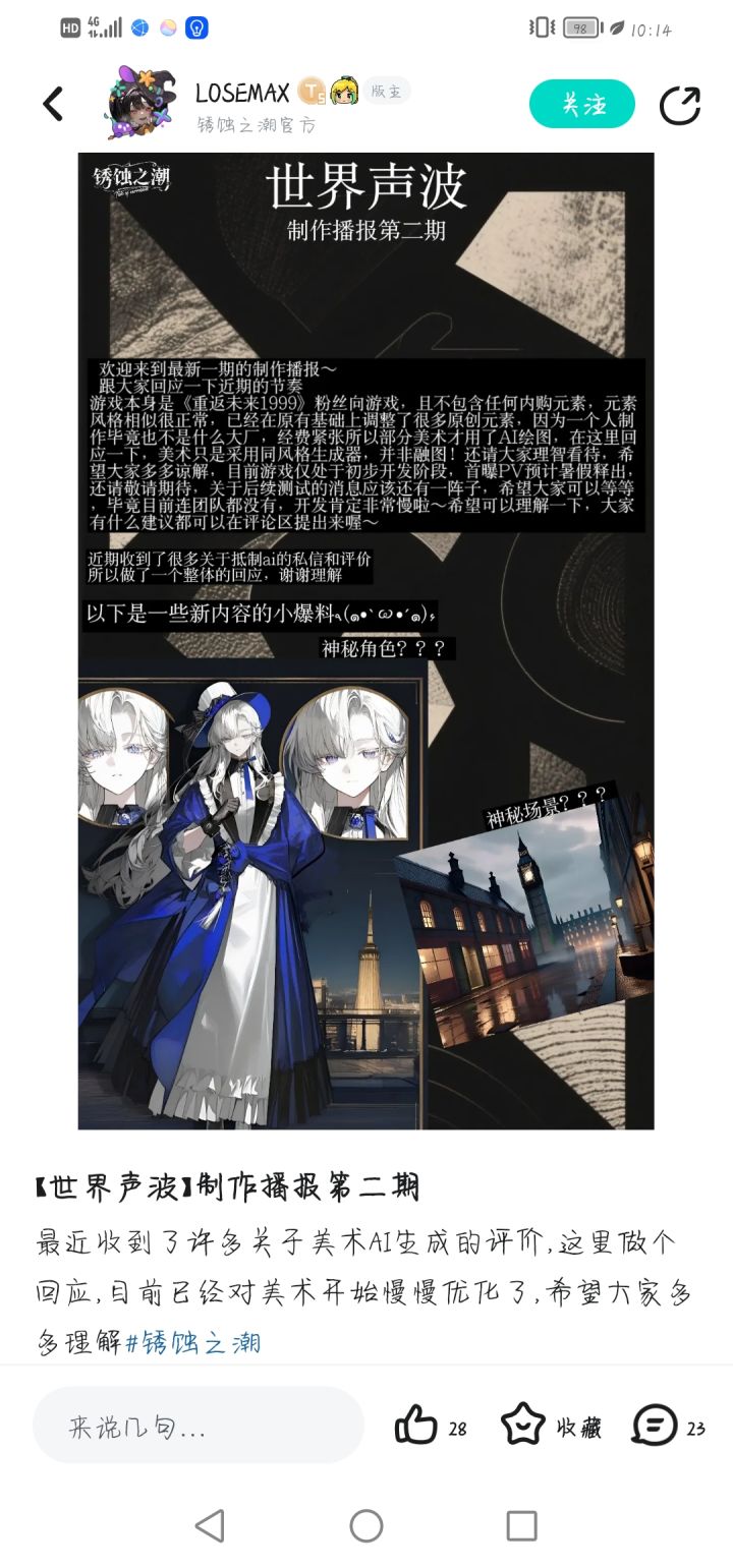 这是一款“粉丝向”的游戏,我至今也没明白到底粉了个啥,用9的画风去喂ai,游戏宣传中没有打任何二创,没有保留任何9的世界观,打着独立游戏的旗号然遭受了一系列恶评,于是紧急发布一条“1999粉丝向游戏”通告。经过一番鏖战,为爱发电的作者终于宣布了游戏下架。