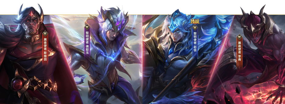 秩序对决混沌系列新皮肤火热售卖中!黎明使者 赵信、黎明使者 佛耶戈、黑夜使者 斯维因、黑夜使者 李青邀你加入黎明与黑夜的对决!同时,大礼包及完全体礼包限时上架,更有秩序对决混沌大集结限时魄罗宝箱同步热卖中~