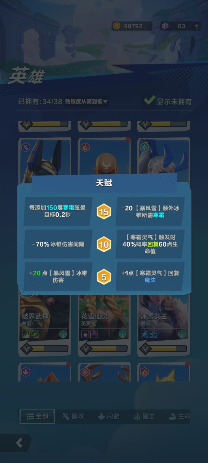 疗愈魔法、奥法之盾、奥法寒霜、爆裂寒霜、爆裂之盾前期1-2后期看情况可以补满
