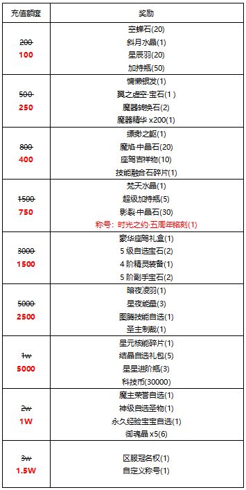 所有玩家每个档位将获得一次限时100%返利机会,可以与所有活动叠加享受,详情请查看游戏内“超值福利”。