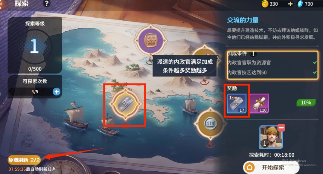 到了第4章探索解锁以后,注意探索尽量拿建造加速,这样可以加快前期开荒的节奏更快的速堡