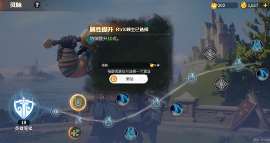 英雄到达10-20-30-40-50等级时,可开灵脉,灵脉可增强英雄属性以及技能增幅