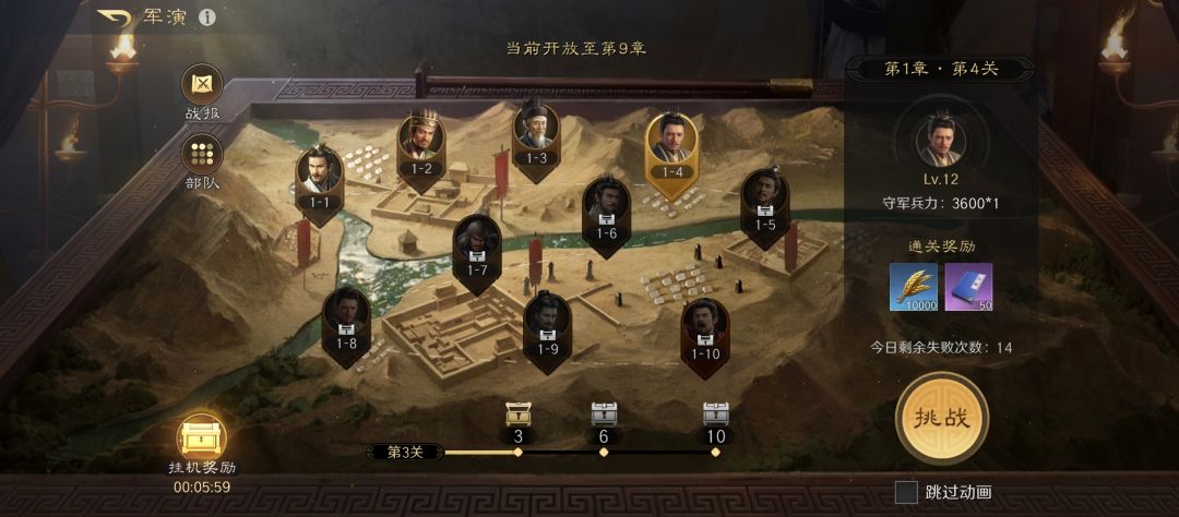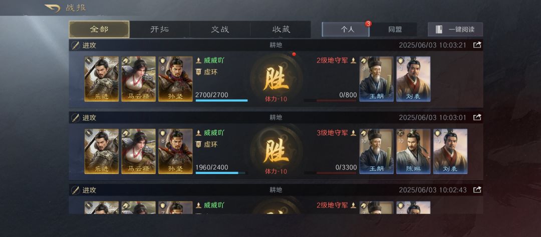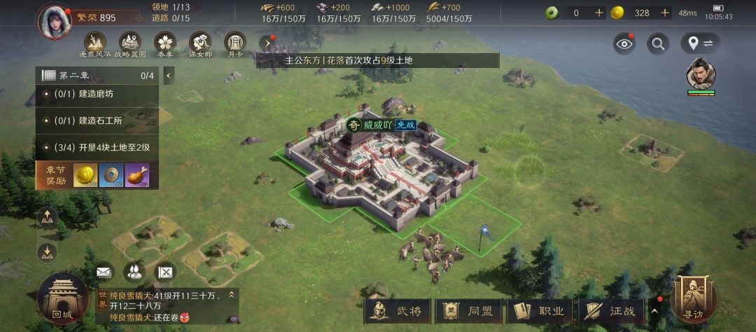 - 紧跟主线:前期紧跟主线任务,每完成一个章节任务,全队武将恢复60点体力,还能解锁更多开垦地和领地上限。