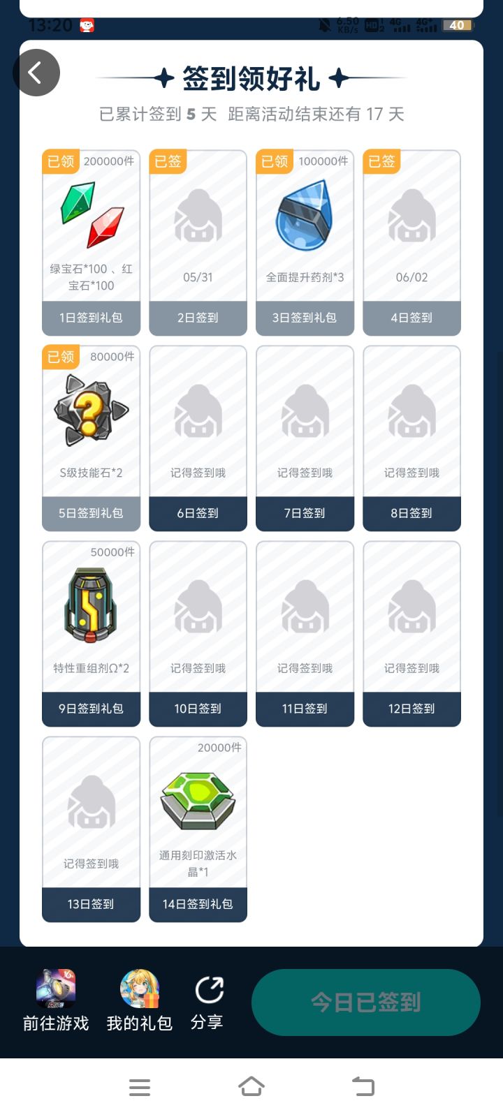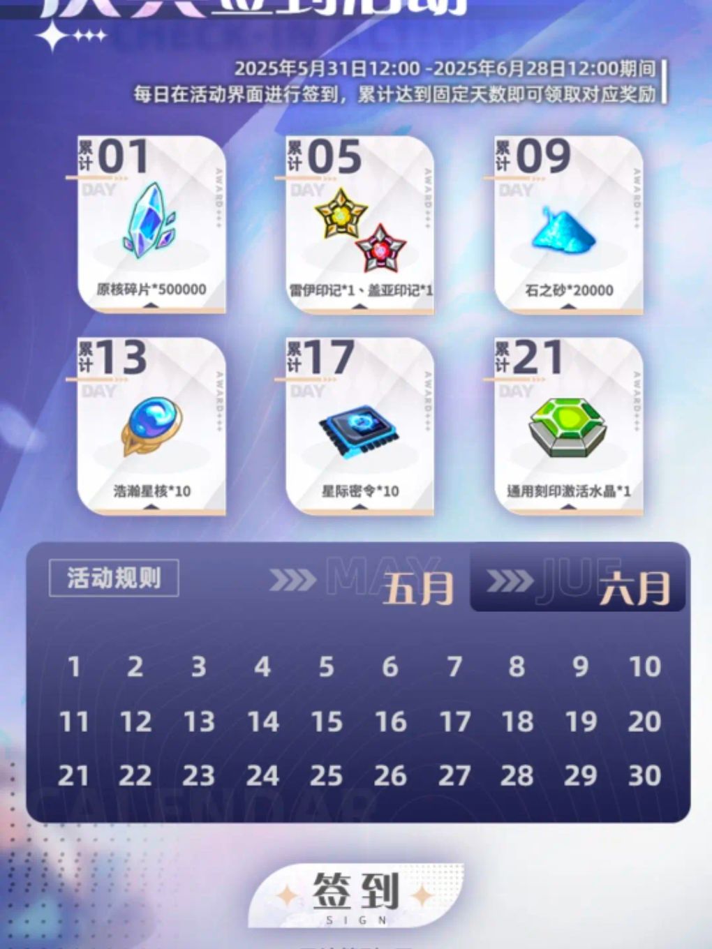 签到14天有1个水晶,同时签到完成可以参与抽奖,概率获得周边等物品