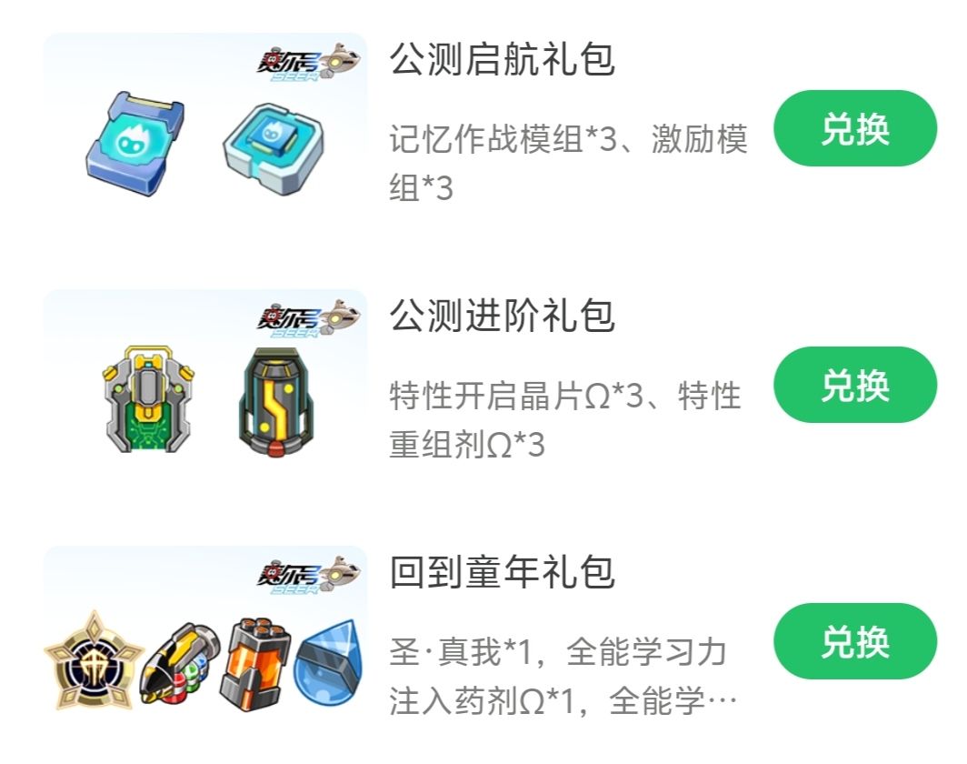 礼包3:特性开启晶片Ω*3,特性重组剂Ω*3