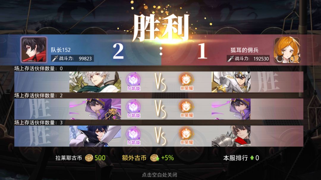 匹配到不同的船长可赢得的基础古币数量不同,如果对对手不满意,则可以消耗古币更换对手;