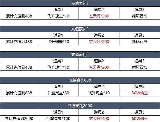 【活动简介】活动期间累计充值达到指定金额即可领取惊喜礼包!