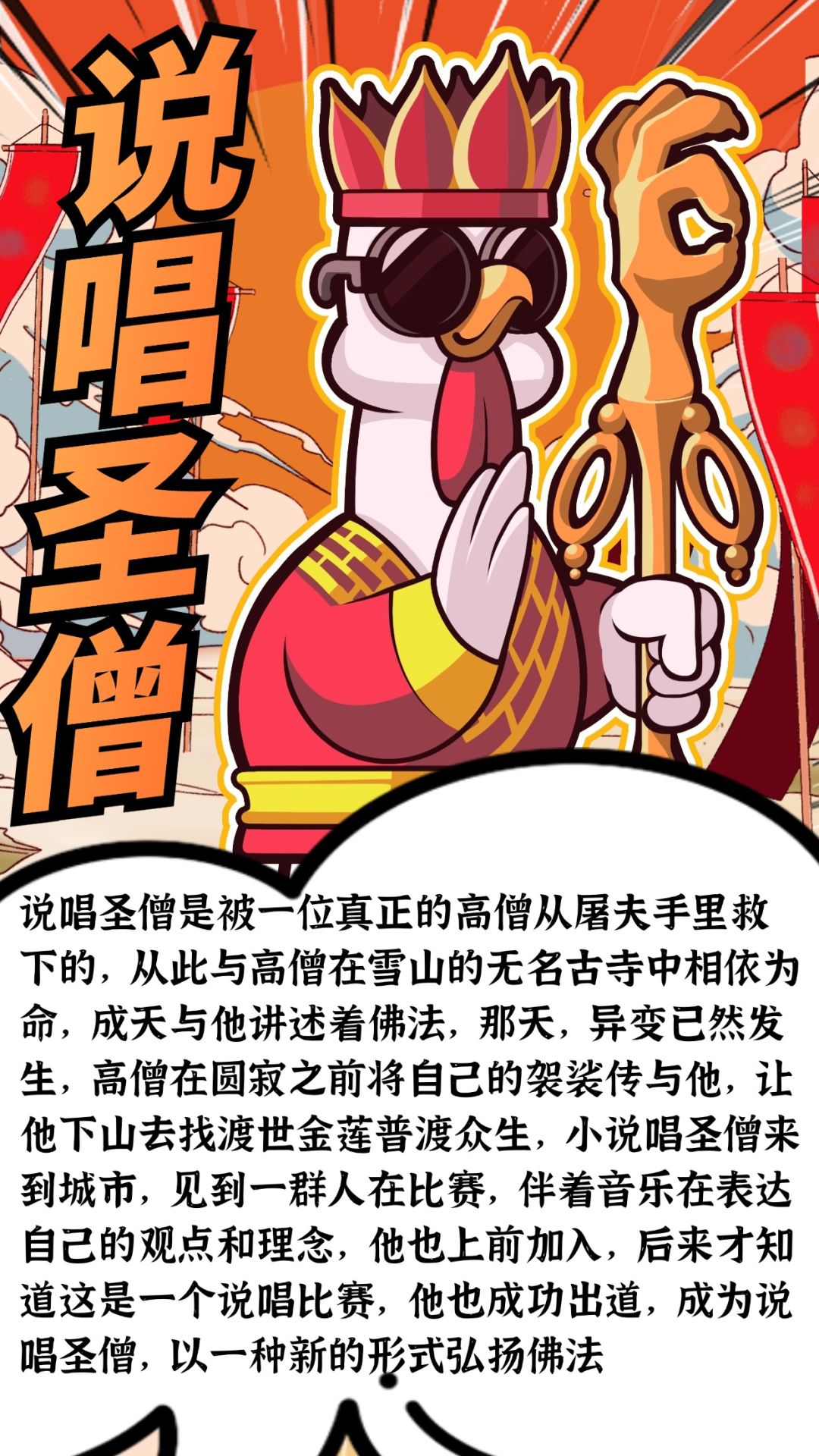 他本是一屠夫刀下的待宰羔羊,幸得路过的高僧慈悲为怀,从血泊中将他救起,带入古寺。高僧日复一日地向说唱圣僧传授佛法,那些深奥的经文,在高僧的口中化作涓涓细流,滋养着说唱圣僧幼小的心灵。