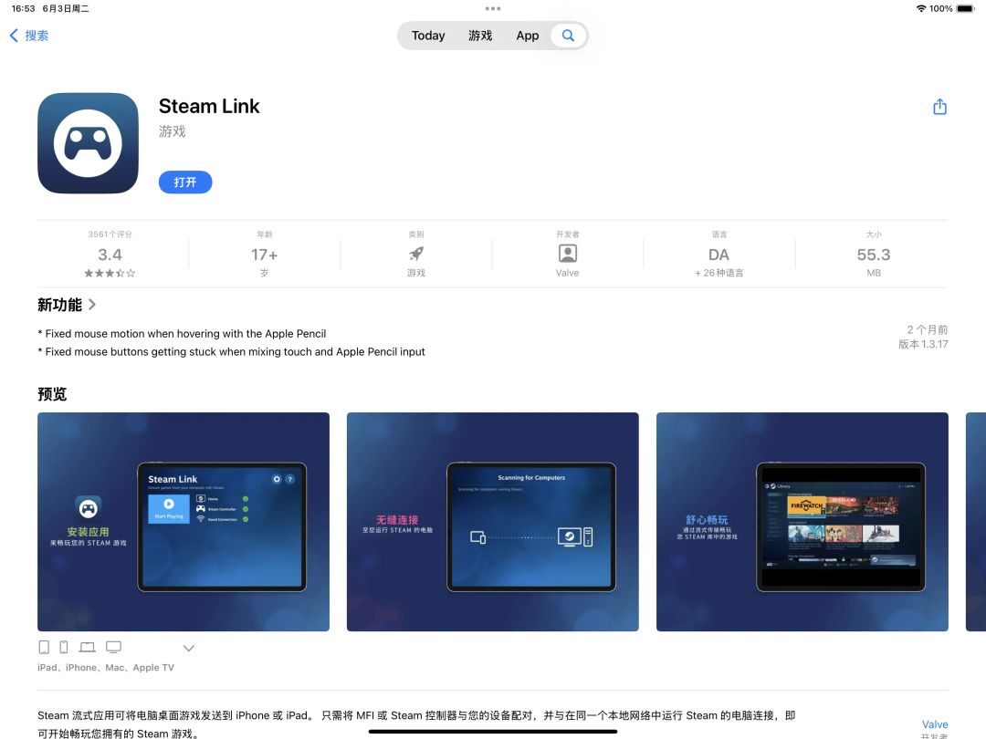 以苹果端为例,要进入苹果应用商店后,自行搜索Steam Link这个App。下载后打开,只需要两端接入相同的网络便可无延迟连结。