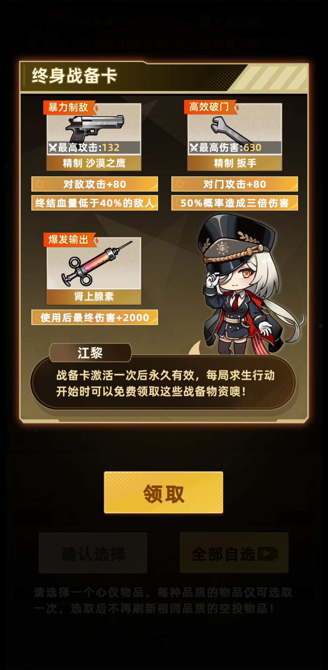 --开局可以直接分解自带的手枪,给精致手枪提升到+1(p2),可以提升部分攻击力--;