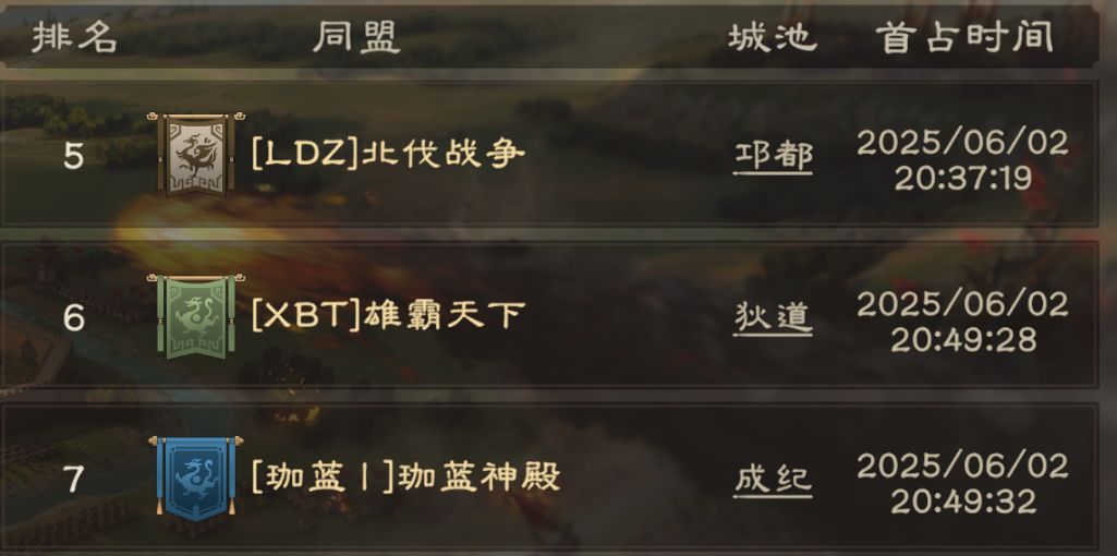 同盟战力第一的【天策府】专攻荆楚夏口,【战斗风】的目标只有郯,【大江山】备战陇西狄道南门,由分盟进攻同州的成纪,而首夺下1级城的同盟【CAT】则在江东建安北门整备完毕,他们都极有可能以前六的成绩拿下2级城。