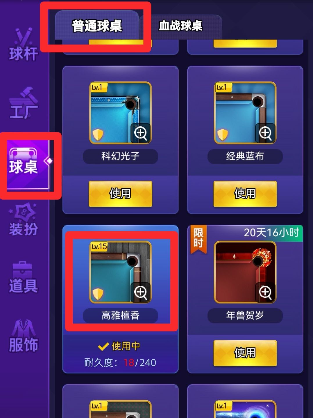📌背包→球桌→普通球桌,点击球桌,就能看到球桌的升级界面,普通球桌升级需要金币与青石板,点击青石板,会看到青石板可以由普通球桌碎片合成。